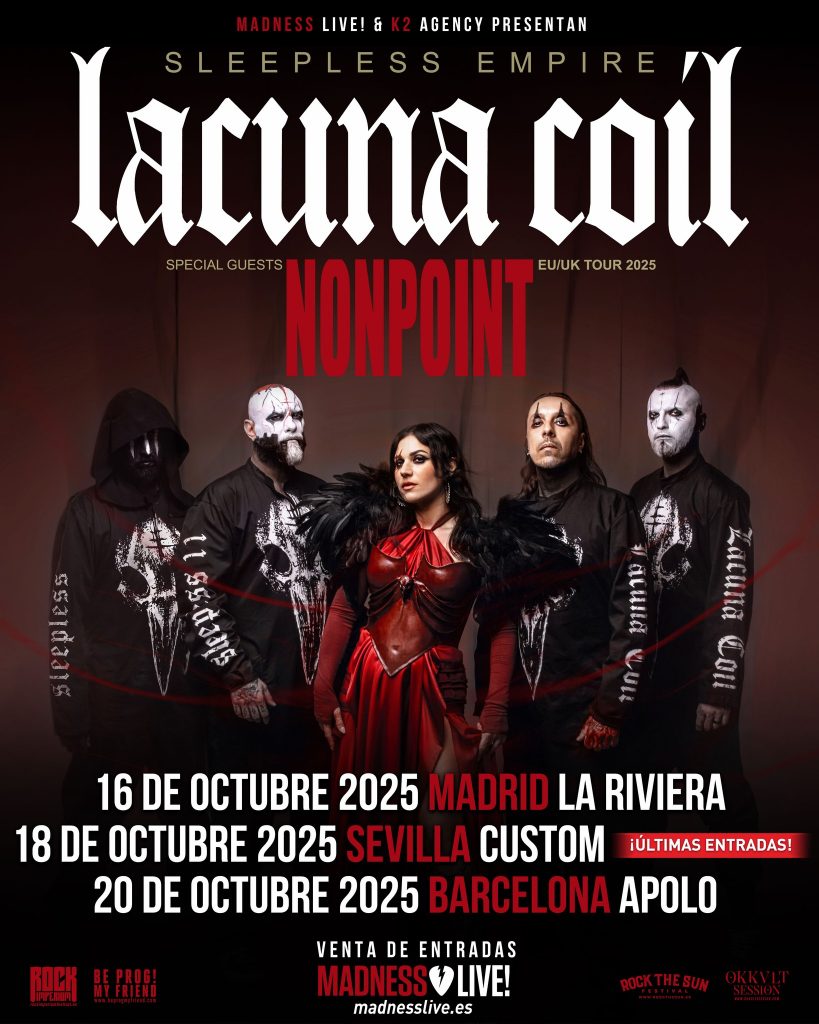 Desde que se anunció la gira, la expectación no ha dejado de crecer. No es para menos: Lacuna Coil lleva casi tres décadas en la carretera, consolidándose como una de las bandas más influyentes e imprescindibles del metal moderno. Su sonido, a medio camino entre la potencia del metal alternativo y la melancolía gótica, los ha convertido en una referencia inconfundible. Con Sleepless Empire, la banda demuestra que sigue evolucionando sin perder su esencia, y los conciertos de esta gira serán la prueba definitiva.