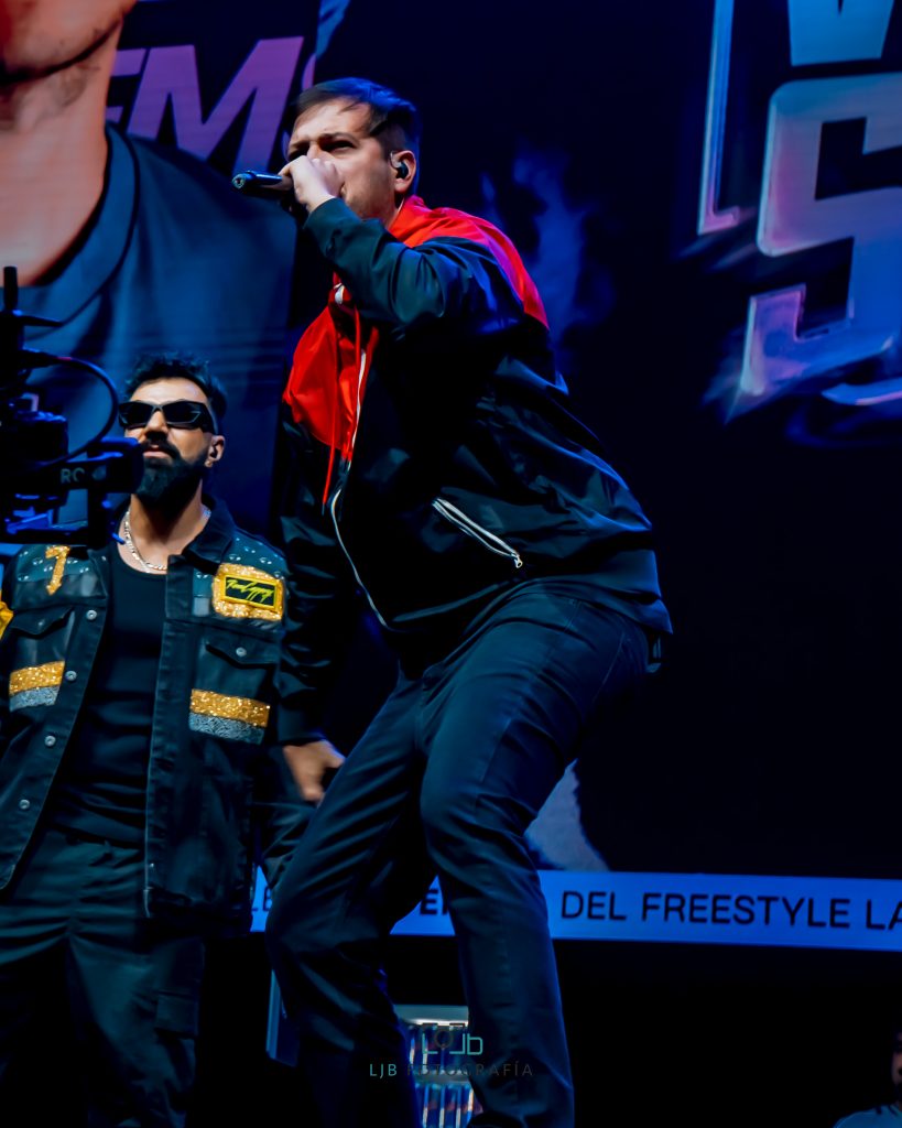 Luego tuvo lugar una de las grandes sorpresas de la noche y es que hizo acto de presencia con una improvisación incluida uno de los freestyler mas importantes de España, Bnet, el que fue aplaudido nada mas entrar en el escenario, quedando patente y demostrado que es uno de los artistas que mas cariño recibe por parte del publico exigente de freeestyle.