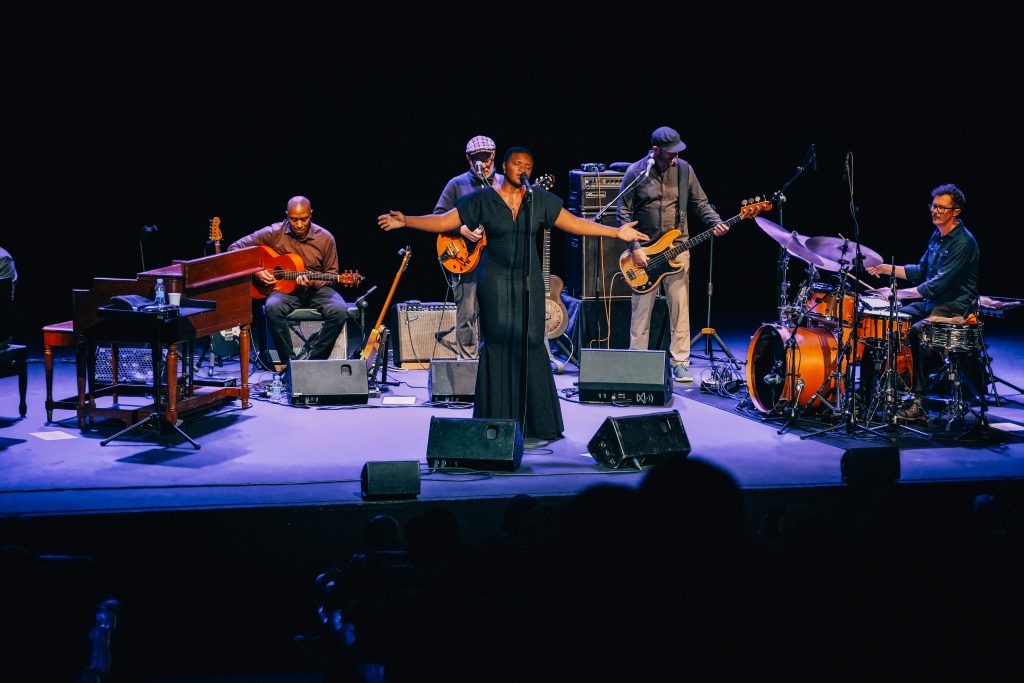 Su banda, discreta y precisa, fue un apoyo impecable. Nada sobresalía por encima de lo necesario, nada buscaba protagonismo. Todo estaba al servicio de la voz y del ambiente. Detalles sutiles en la guitarra, un contrabajo con una presencia cálida y unas líneas de piano que parecían flotar entre la luz tenue del teatro. Un equilibrio perfecto para un repertorio que se mueve entre el gospel, el soul más orgánico y pequeñas pinceladas de jazz.