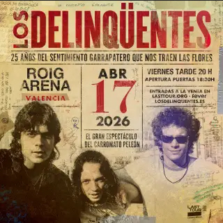 El mítico grupo se presenta en esta gira sin El Migue (voz y emblema del trío), en un concierto que no solo sirve para celebrar 25 años de carrera, sino también como homenaje a su figura. Sobre el escenario estarán Marcos del Ojo (El Canijo de Jerez) y Diego Pozo (El Ratón), llevando de nuevo al directo ese imaginario único que ha convertido a Los Delincuentes en una banda de culto.