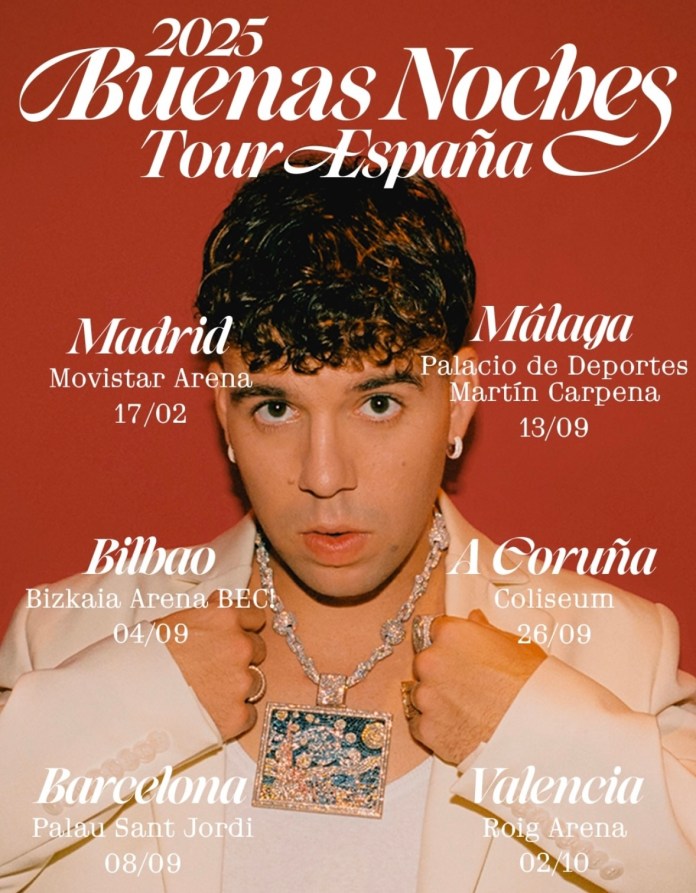 Quevedo ha desvelado las únicas siete ciudades españolas que van a poder disfrutar en directo de su gira “Buenas Noches Tour España”. Madrid, Barcelona, Bilbao, Valencia, Málaga y La Coruña son las seis capitales anunciadas por el artista canario que acogerán su nuevo show en directo durante el año que viene, que se suman al concierto de Gran Canaria, anunciado hace unos días por el propio Quevedo, para el próximo mes de mayo.