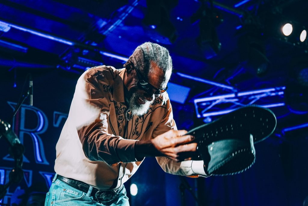 La voz sigue siendo un tesoro. Rugosa, cálida, vivida, de esas que cuentan historias incluso antes de que empiece a cantar. Las letras mantienen intacta esa forma de entender el blues que no necesita adornos, porque la verdad ya viene de serie. Pocas veces puede verse a alguien disfrutar tanto del acto de cantar. En él no hay pose ni esfuerzo fingido. Está en su hábitat natural, feliz como un niño, entregado de una manera que desarma.
