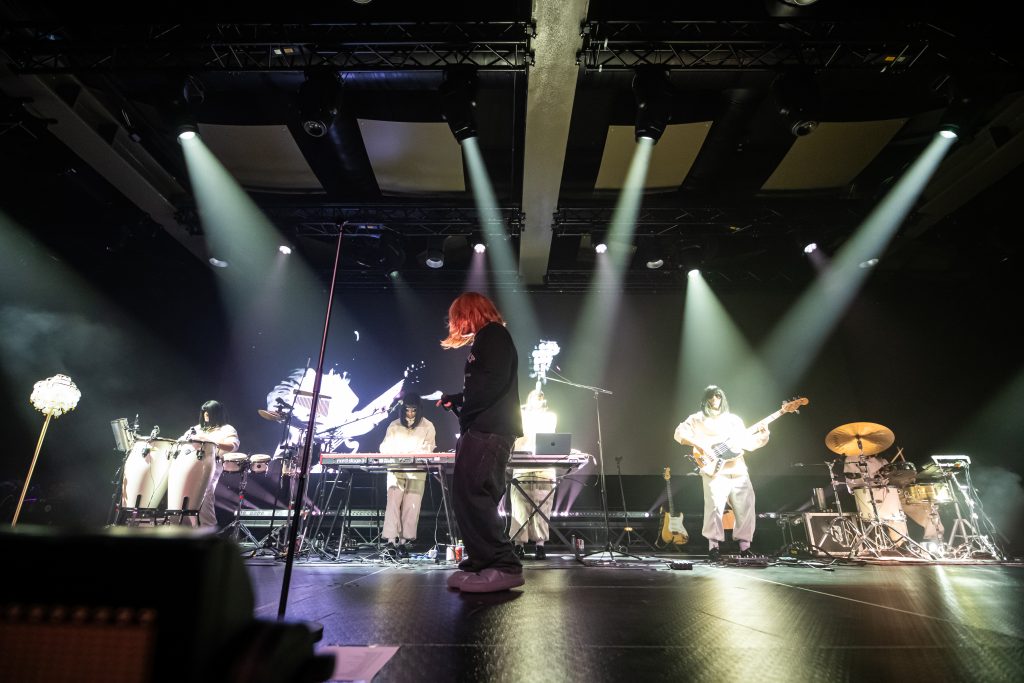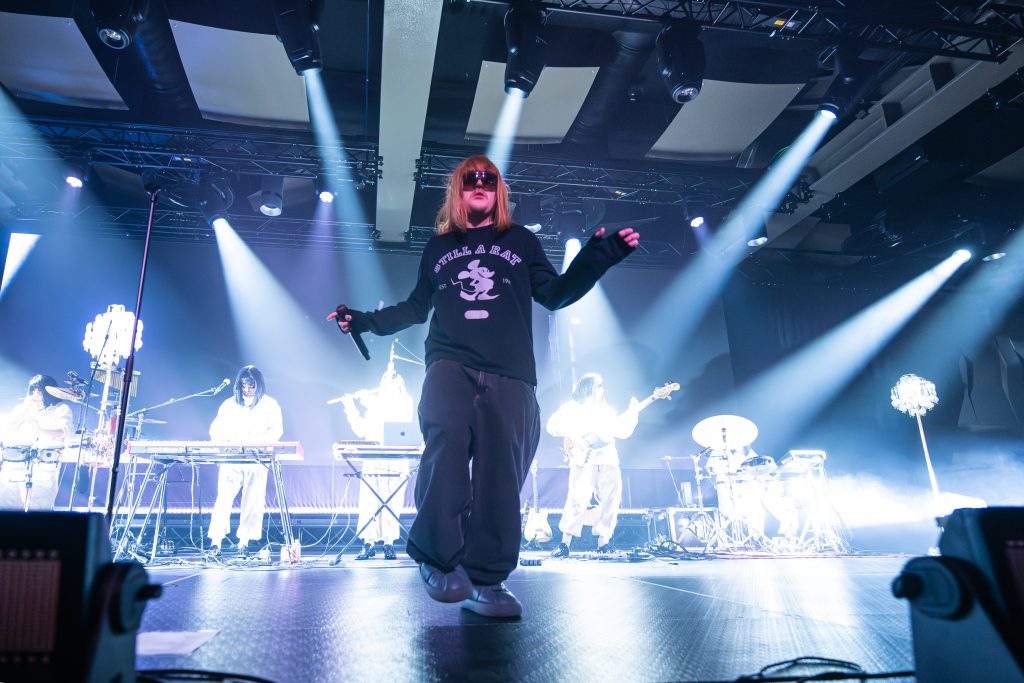 El show, un auténtico vaivén de emociones que se mueve estéticamente entre lo performativo y lo íntimo, también ha incluido algunos de los primeros lanzamientos del madrileño, como “Brujita”, “Cell” o “Gata”, uno de los himnos experimentales de su colectivo Rusia-IDK. En “Kinki Fígaro”, Rusowsky ha evidenciado la formación musical clásica de la que dispone, a través de una composición que se deconstruye, pasando de un sonido orquestal a una mezcla de hip-hop y electrónica. “Mwah” se ha iniciado con un Rusowsky solo al piano, del que se ha desprendido hacia la mitad de la canción. En “Bby Romeo” se hace especialmente evidente su apuesta por el pop experimental, pero ha sido con los acordes de su viral “malibU” cuando se ha producido el momento de mayor éxtasis colectiva.